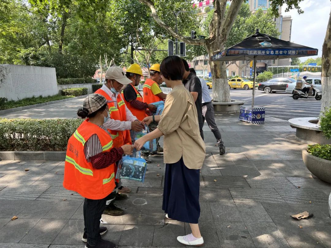 7月22日下午,集團(tuán)工會(huì)和玄武園林領(lǐng)導(dǎo)赴鼓樓廣場(chǎng)、竺橋?qū)Ω邷靥鞖庀鹿ぷ鞯囊痪€養(yǎng)護(hù)工人表示慰問,囑咐他們?cè)谡J(rèn)真做好工作的同時(shí)務(wù)必做好自我防護(hù)。